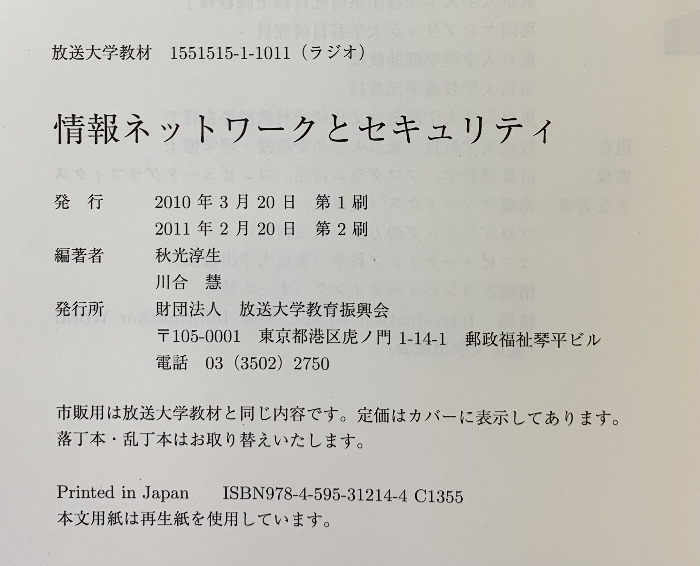 | 情報ネットワークとセキュリティ 放送大学教育振興会 川合 慧 | ||||