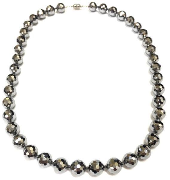 | テラヘルツ鉱石は水晶とケイソなどの材料でできた人工鉱石です。 超遠赤外線と言われ、光のように直進する性質と電波のように透過吸収する電磁波のことです。 テラヘルツ波を照射することにより細胞の劣化を防ぎ老化を防止すると言われ、 血行を良くし生活習慣病の改善が見られます。 細胞が振動するため、医学でも有効であると言われています。 テラヘルツ鉱石64面カット:約10mm ヘマタイト64面カット:約2mm チタンマグネット金具 長さ:約50cm | ||