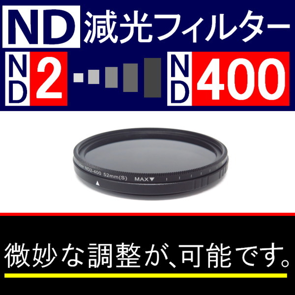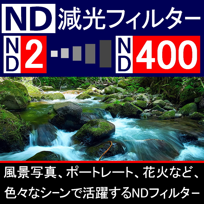 ● 可変NDフィルターです。「ND2」から「ND400」の間で、調整(可変)が可能です。「シャッター速度を遅くしたい時」や「絞りを開けて背景を、ぼかして撮りたい時」などの目的に使うNDフィルターです。 ● このフィルターを取付後に、その上から、別のフィルターなどを取付可能です。その際は、1つ上のサイズの55mmサイズとなります。また、フロントキャップを、取り付ける場合にも、フロントキャップのサイズは55mmとなります。( フロントキャップは、付属しませんが、別で出品中です。) ● この「可変NDフィルター」は、40.5 , 43 , 46 , 49 , 52 , 55 , 58 , 62 , 67 , 72 , 77 , 82mmのサイズが、ございますが、サイズによって、メーカーが異なるため、仕様がそれぞれ異なります。 ● 他にも、いろいろNDフィルター出品中です! → 「 ND2 」は、こちらです。 ← → 「 ND4 」は、こちらです。 ← → 「 ND8 」は、こちらです。 ← → 「 ND16 」は、こちらです。 ← → 「 ND1000 」は、こちらです。 ← → 「 ND2←→ND400 ( 可変式 ) 」は、こちらです。 ← → 「 ND2 ND4 ND8 の3枚組 」は、こちらです。 ← ※ 出品前にレンズ全体を確認していますが、完璧を求める方は、ご遠慮くださいませ。専用ケースは、ありませんが、丁寧に梱包いたします。 ※ 写真は同じものを、使っています。デザインの一部に変更がある場合がございます。あらかじめ、ご了承ください。商品に不安のある方、神経質な方は、ご遠慮ください。 | ||