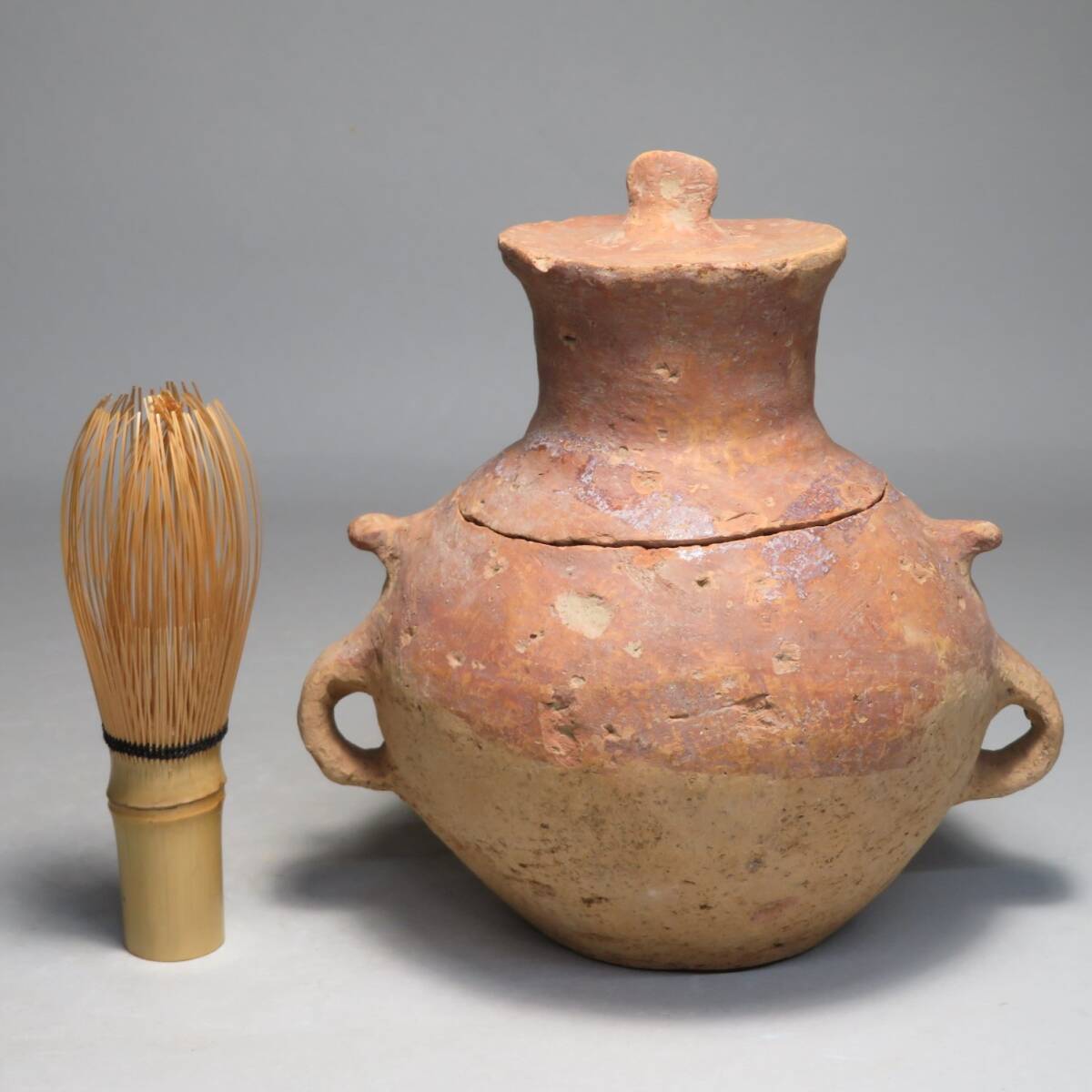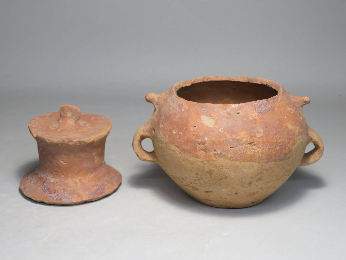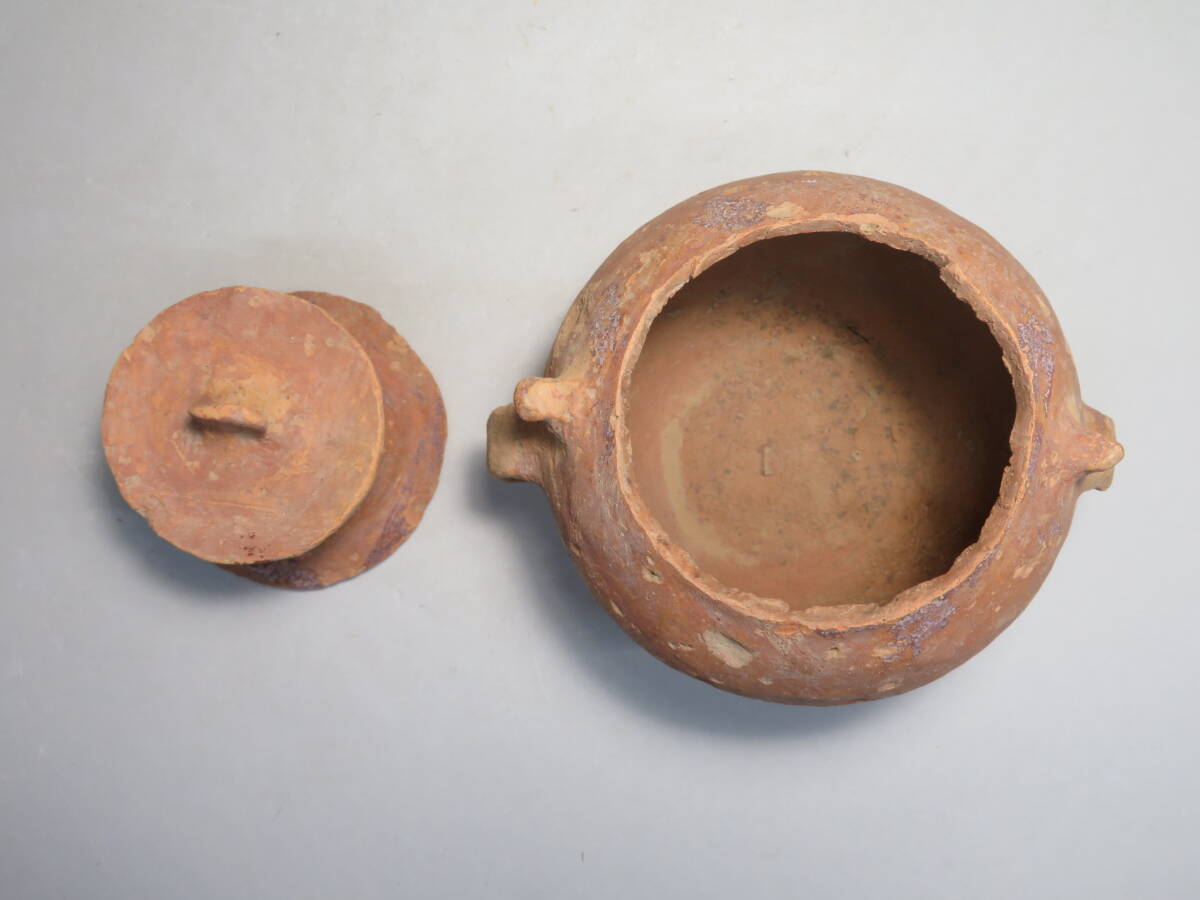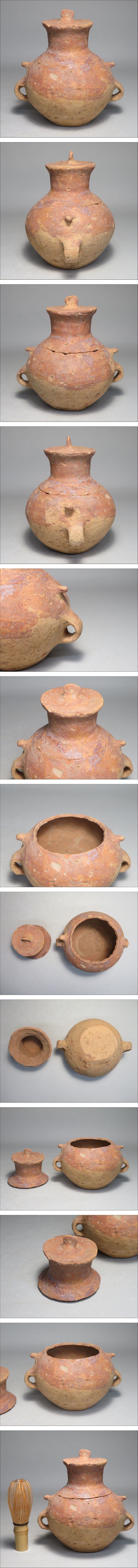 | 「都内コレクター所蔵品」タイ古陶磁 バンチェン土器 耳付蓋物 スプーン◆発掘品 彩文土器 彩陶壺 | ||