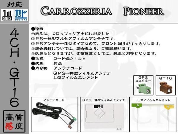 | 受信チャンネル:地上波デジタル UHF(13~62ch) フィルムサイズ:約縦75mm×約横115mm コード長さ:約5.0m コネクタ:GT16 GPSアンテナ用コネクター:カロッツェリア対応タイプ(緑コネクター) |