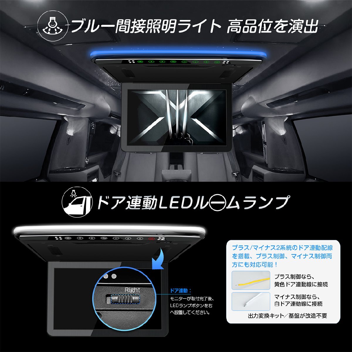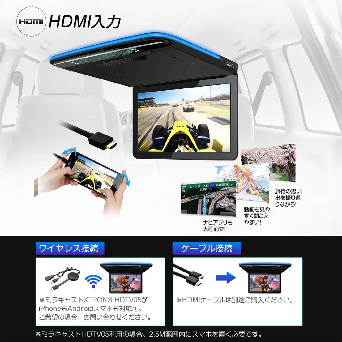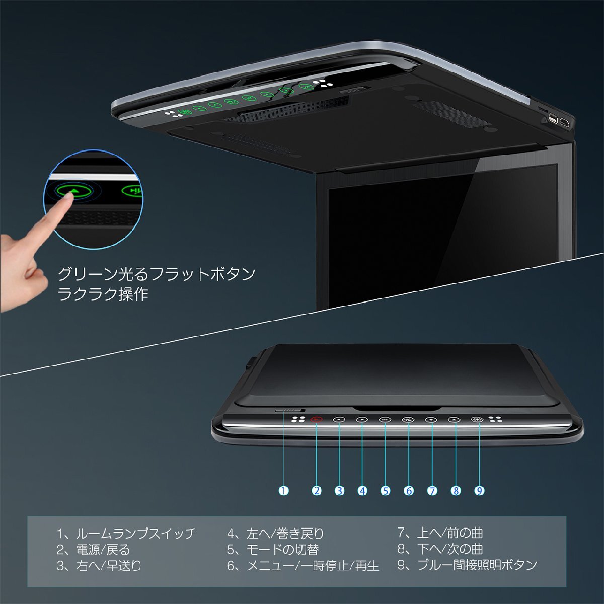 最新販売 スピーカー内蔵 フラッグシップ機種 13.3インチ大画面 1920x1080超高画質 超薄・軽 HDMI対応 ・1920*1080 フルHD超高画質・ 高輝度LED・日本語メニュー・ ・日本車対応 ルームランプコントロール配線 +も-も対応・ ・HDMI端子搭載 スマホにかんたん接続し、大画面で楽しむ・ ・ USB SD ・