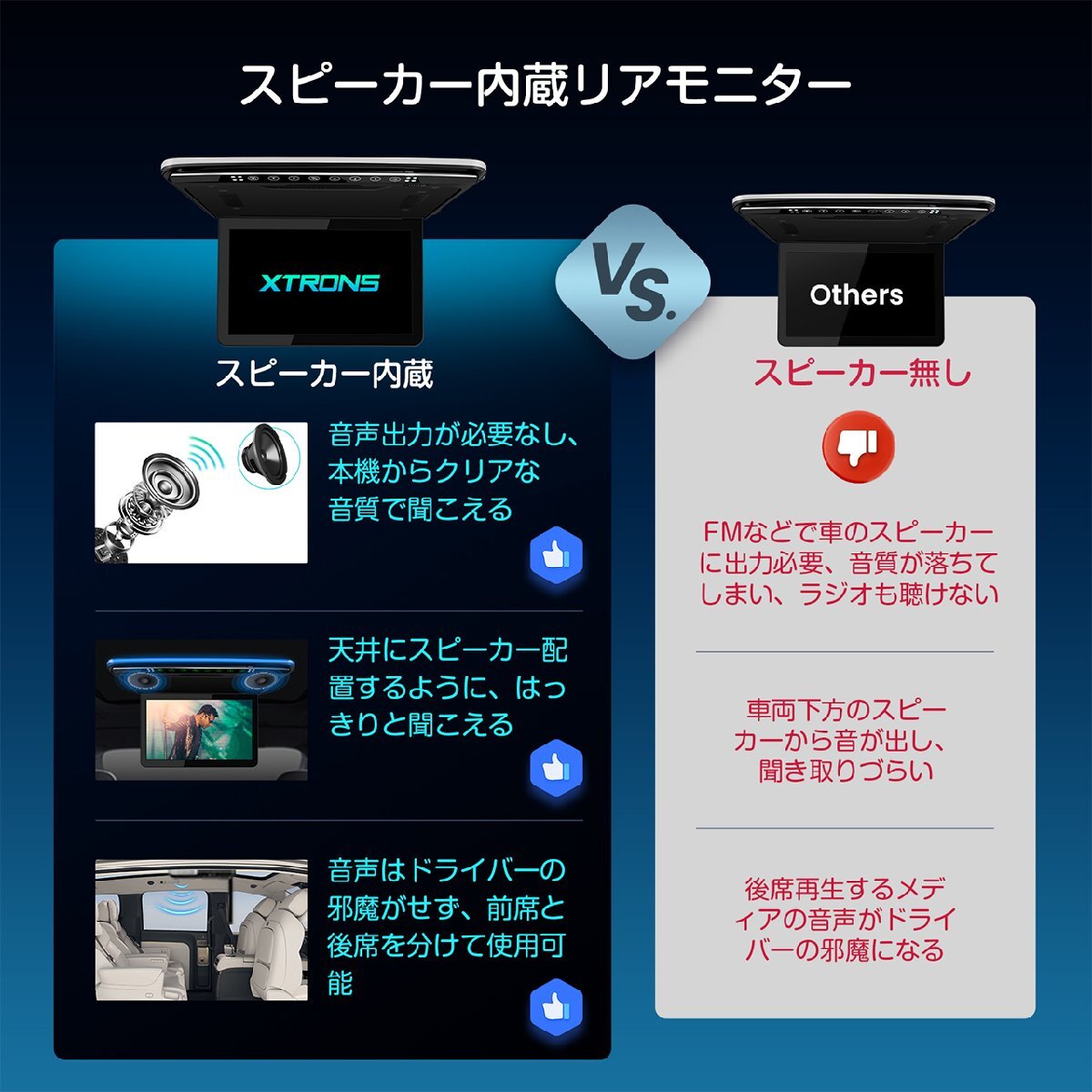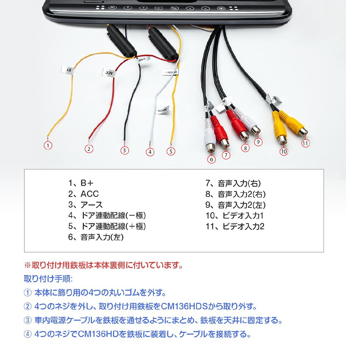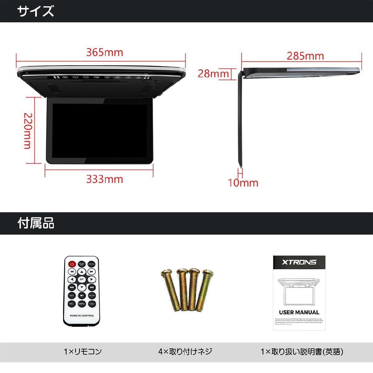 最新販売 スピーカー内蔵 フラッグシップ機種 13.3インチ大画面 1920x1080超高画質 超薄・軽 HDMI対応 ・1920*1080 フルHD超高画質・ 高輝度LED・日本語メニュー・ ・日本車対応 ルームランプコントロール配線 +も-も対応・ ・HDMI端子搭載 スマホにかんたん接続し、大画面で楽しむ・ ・ USB SD ・