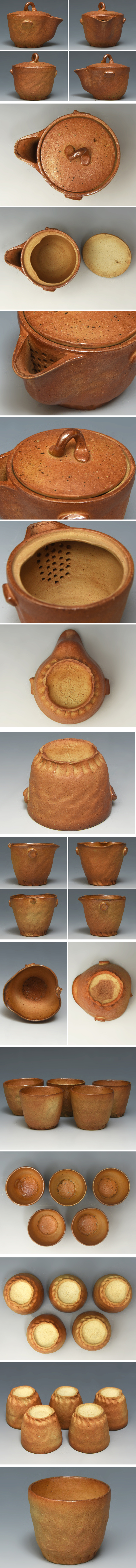 宗陶窯 城山 (造) 信楽 茶器 / 宝瓶 湯冷 煎茶碗 5客 / 共箱 共布 しおり 煎茶道具 茶道具 急須 煎茶碗 会席 懐石道具 陶磁器 |