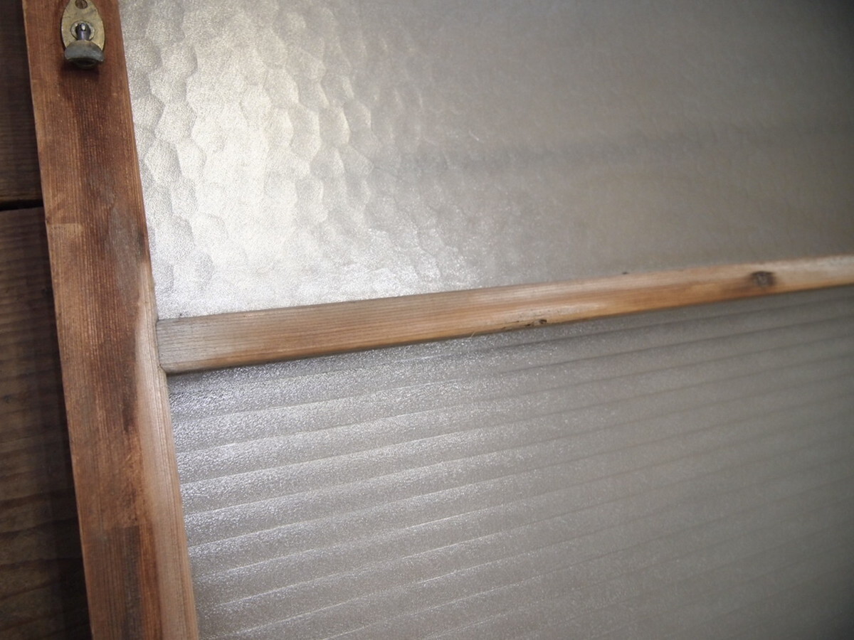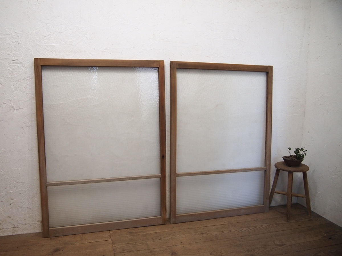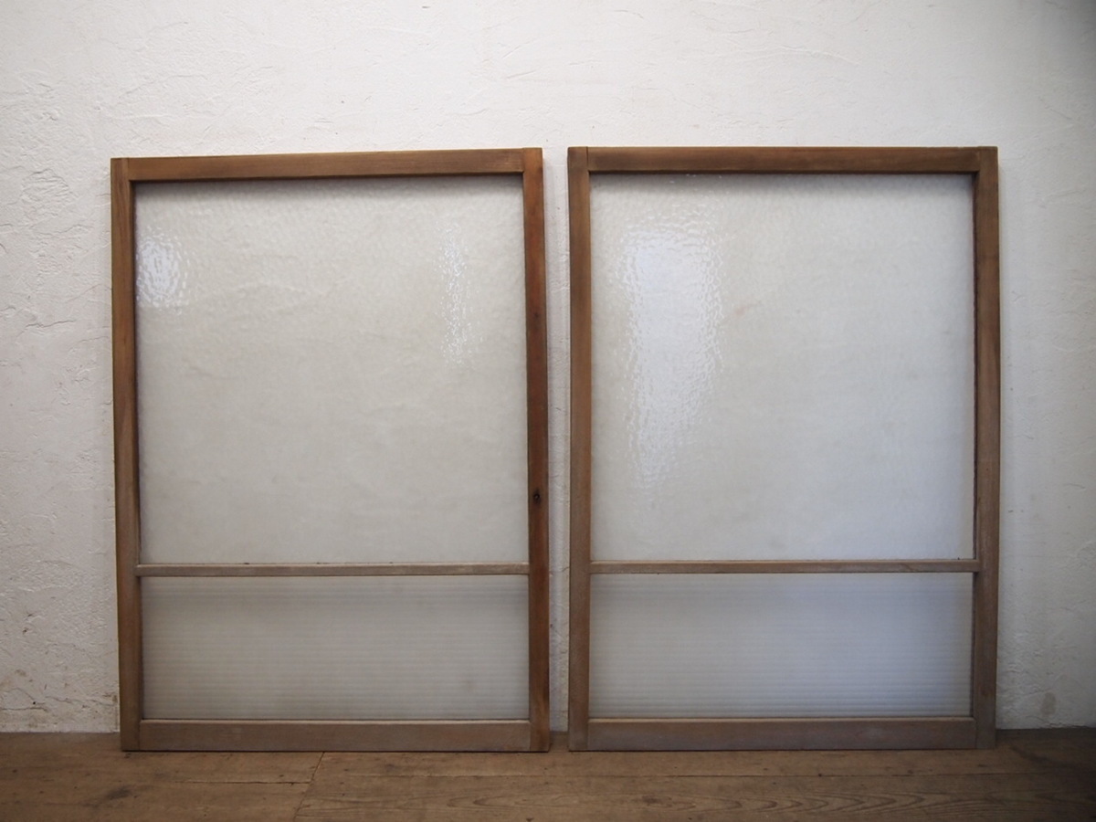 商品情報 | ■商品詳細■ レトロな古い木枠ガラス戸、2枚セットです。 長年使い込まれた味わいのある品です。 ガラスは、デザインガラスと銀モールガラスを使用しています。 一般のご家庭はもちろん、レトロな店舗什器にもお勧めです。 経年の傷や欠け、染み等がありますが、使用には問題ありません。 ガラスにひびや割れはありません。 古い物とご理解いただければ幸いです。 ご不明な点などありましたら、質問欄にてお願いします。 ■サイズ■ 全体(最大値) (H 125,5cm×W 90cm×D 3cm)×2枚 竪框 4cm 多少の誤差はご了承下さい。 |