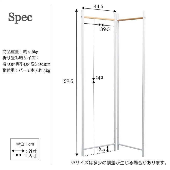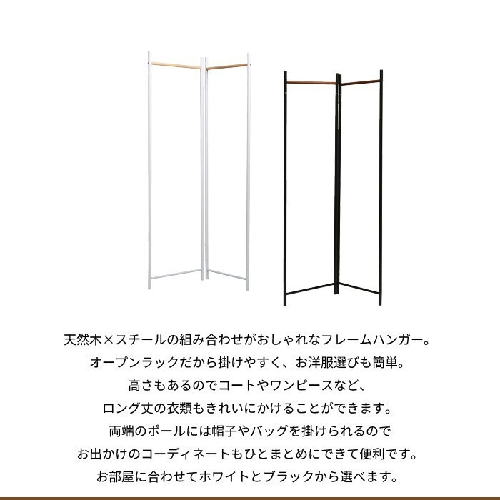 | 商品説明 | シンプルで機能的やフレームハンガーシリーズ。 【仕様】 ■サイズ:約幅44.5×奥行20×高さ150.5cm×2枚 ■重量:約2.6kg ■材質:天然木、スチール ■塗装:ラッカー塗装、粉体塗装 ■機能:脚裏ゴムカバー付、折り畳み ■生産国:台湾 ■組立区分:お客様組立品 |