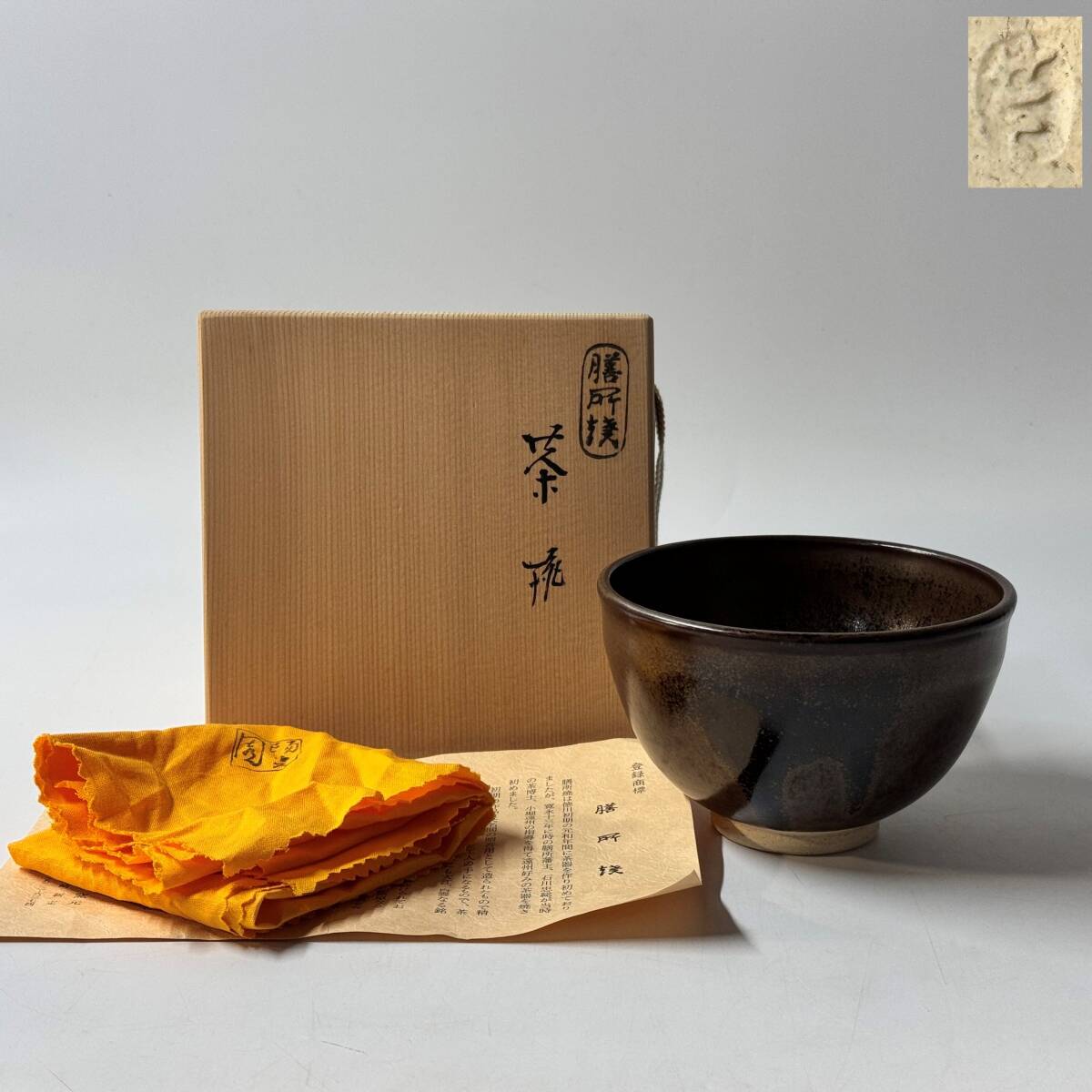 未使用 膳所焼 陽炎園 岩崎新定 銘印在 抹茶碗 茶道具 茶器 共箱 共布 栞 経年保管品 現状品の出品です。
