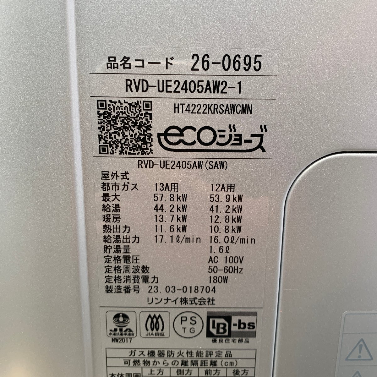 【直接引取or家財便】【開封済未使用品】 Rinnai 屋外壁掛式給湯器 RVD-UE2405AW2-1 24号 リンナイ 都市ガス用 |
