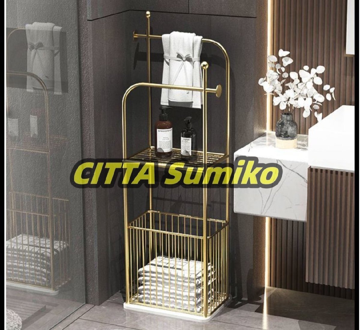 床置き式バスルームタオルラックは、追加の収納スペースを提供し、さまざまなトイレタリー、タオル、化粧品、その他のアイテムを整然と配置して、バスルームのスペースを無駄にしないようにするのに役立ちます。スペースが限られているバスルームの場合、床置き式タオルラックは壁のスペースを占有せず、地上スペースを有効に活用できるため、バスルームをより整然と整理できます。仕様:製品名: 床置き式タオルラック素材: 金属色: ゴールド、ブラックサイズ: 120*40*30cm重量: 約10kgパッケージ:1*金属製自立式タオルラック