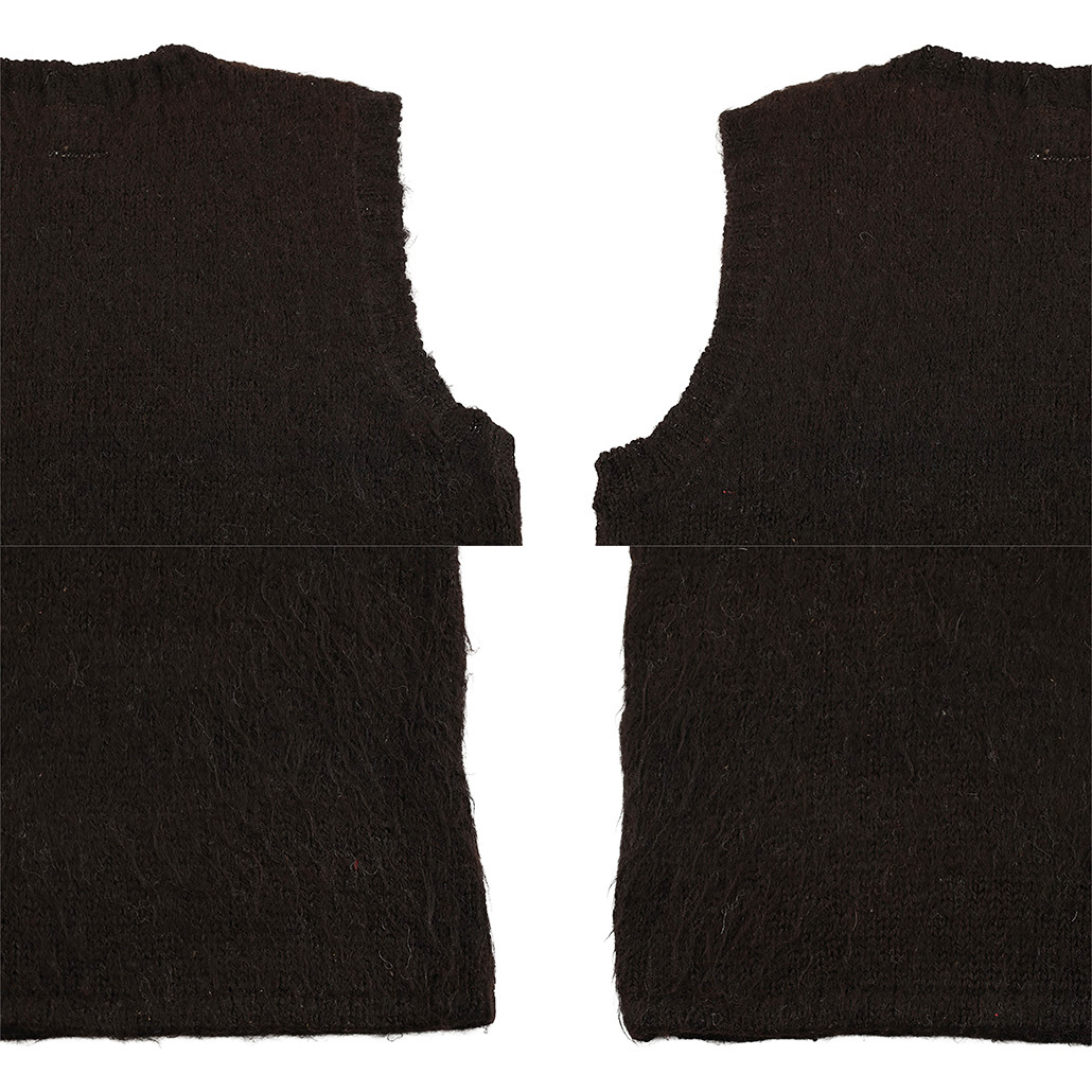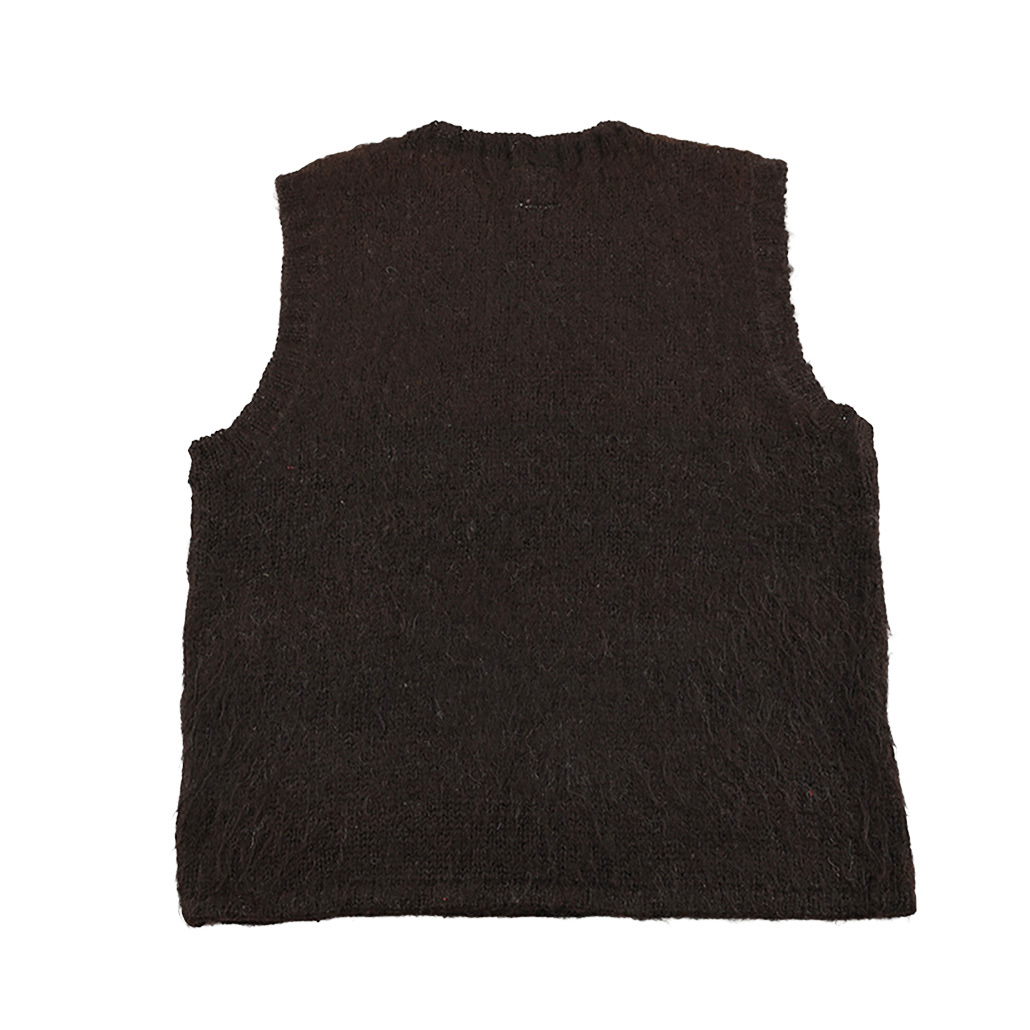 | ブランド・素材・デザイン特徴 | ふんわりとした毛足が魅力のシャギーアルパカニットベスト。 柔らかな風合いと軽やかな着心地で、シーズンムードを一気に高めてくれます。 シンプルなクルーネックとストレートシルエットが、ロングTシャツやシャツとのレイヤードスタイルに最適。 |