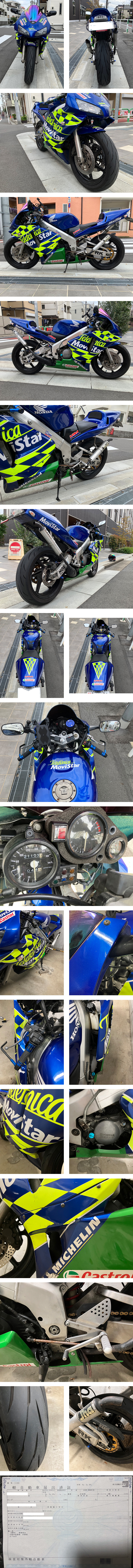 | 一言コメント | 現在もツーリングでフルで乗ってる車両です。 NSRのポテンシャルを味わえる1台です。 (ですがこちら素人のためご自身で整備の上楽しんでください) 当方素人のため記載漏れ、確認漏れなどあるかもしれません。 *車両は引渡し後いかなる場合でもノークレーム厳守となります。 気になる所がございましたら必ず質問又は事前に現車確認を行ってください。 |