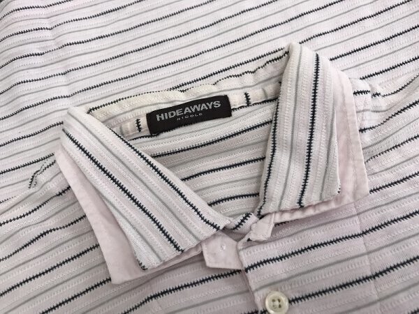 HIDE AWAYS NICOLE ハイダウェイ ニコル メンズ ボーダー 織柄 綿・ポリエステル 二重襟 半袖ポロシャツ 46 ピンク黒グレー です。| 出价者 | 信用 | 价格 | 时间 |