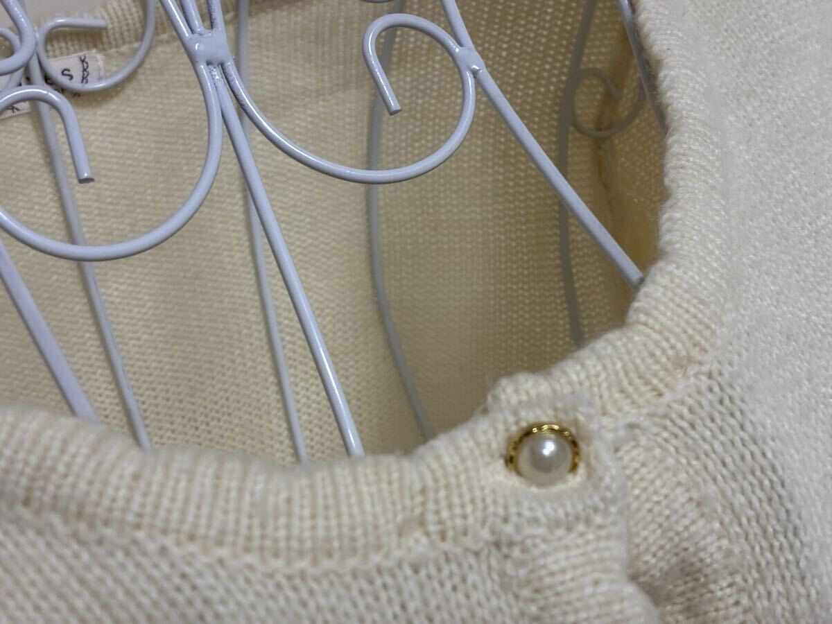 | 自己紹介欄にて発送対応させて頂けない日をお知らせしていますのでご確認をお願いします。 ショッパーは付きません。 サイズ:M 着丈: 約53cm 肩幅: 約 36cm〜(伸縮性があります。) 身幅平置き:約43cm〜(伸縮性があります。) 袖丈:約60cm ※素人採寸の為少しの誤差はご容赦ください。 色:アイボリー系 状態:usedですので、小さな汚れ等気にされる方、usedに新品同様のクオリティをお求めの方、話し合いも頂けず評価よりクレームをお申し出になられる方はお控え下さい。 全体に毛羽立ち感があり、襟周り取り外し可能フェイクファーティペットは付きません。 前身頃裾に幅広レースが重ねられた前身頃開閉可能フェイクパール飾りボタンが付いたふわっと軽い生地のニットカーディガンです。 一同梱発送、送料について一 佐川急便での発送の際のみ3日間分同梱発送します。 最初の落札日を含む3日間分です。 ご不明な際にはお問い合わせ下さい。 4日目分以降の同梱はお受けしませんので必ずご了承の上ご入札お願いします。 佐川急便の送料は 北海道1000円 東北800円 関東から九州は700円です。 沖縄は1800円 離島は別途中継料金がかかります。 佐川急便以外の発送はお受けしません。 | |||