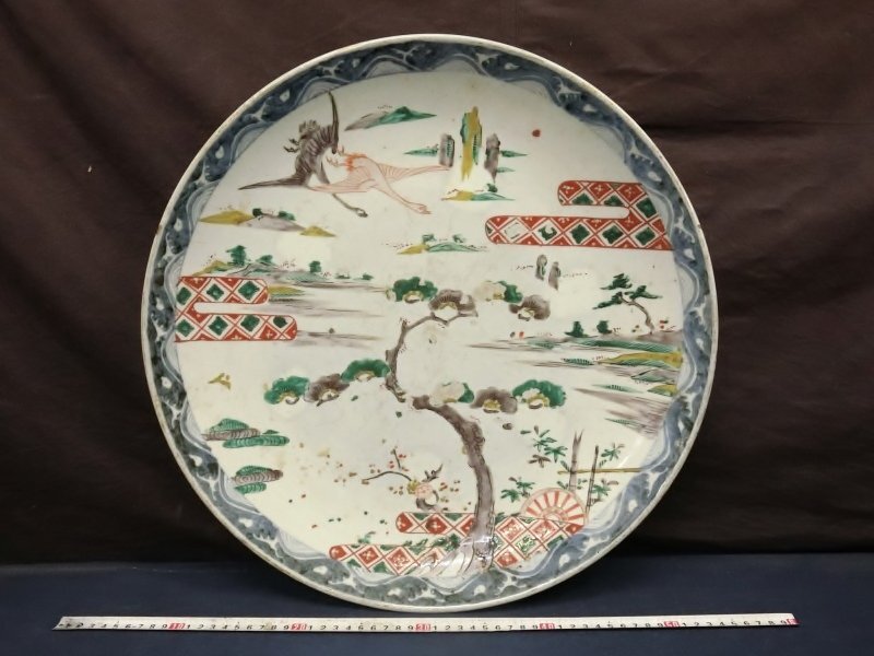 L1444 錦絵 吉祥文 大皿 陶芸 陶器 絵皿 飾り皿 |