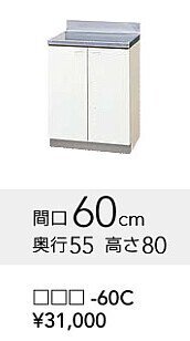 | ◎クリナップ・木キャビ・調理台『新クリンプレティ』特別価格 間口600mm・即決価格は、写真セット定価31.000円のなんと 47%OFFで18.073円【消費税込】 ◆エコノミーで最適な調理台です。高さ80cm・奥行55cm。 ◆扉の色は、ホワイト・ペールウッドから選択できます。 ◆写真の扉の色は、ホワイト。シンプルなキッチンに合う、やわらかな飽きのこない色です。 ◆ワークトップは、ステンレスです。 | |