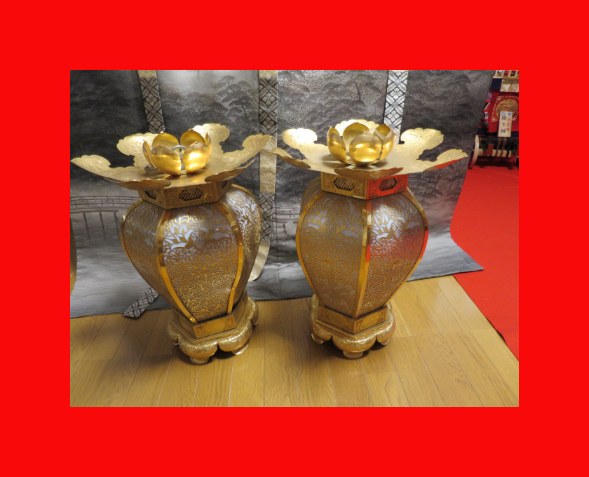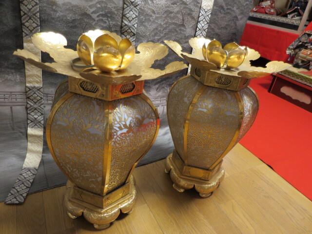 「釣り灯篭1対K-294」 幅29cm高さ59cm新品同様の美しいお品です。 (詳しくは写真にてご確認の上ご判断下さい) |
