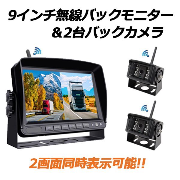 セール ワイヤレス ドライブレコーダー バックカメラ 2台 付き 24V 12V 9インチ バックモニター2画面 同時表示 セット LED 録画 無線