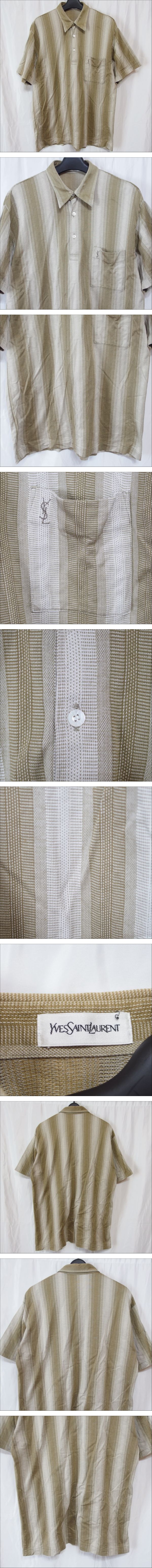 YSL◆イヴ・サンローラン メンズ 半袖 ストライプ柄 シャツ(ベージュ)身幅53.5㎝・着丈71㎝◆USED M | |||