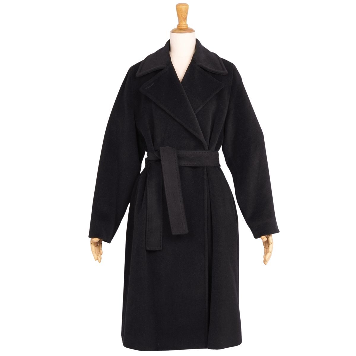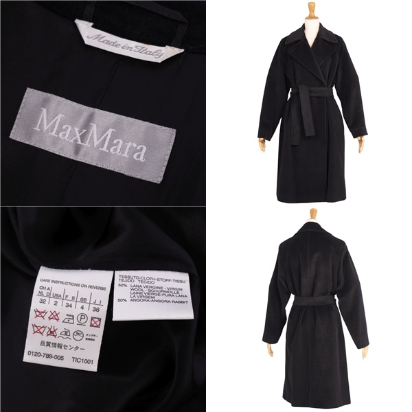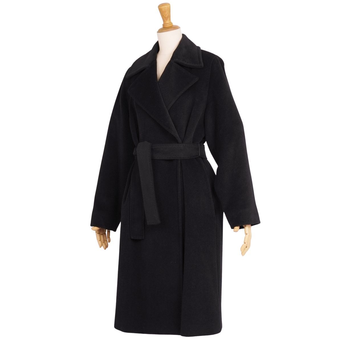 | 美品 マックスマーラ Max Mara コート ベルト付き ロングコート ウール アンゴラ アウター レディース JI36 ブラック |