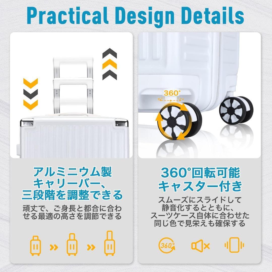 このスーツケースは汎用性の高いブラックとホワイトのほか、ファッション感たっぷりのキャンディカラーもあります。四つのサイズがあり、旅行、出張、キャンプなど、さまざまな場合に対応しています。