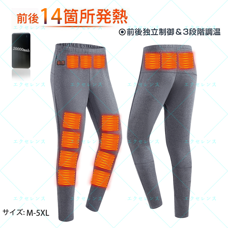 電熱ズボン前後スイッチ独立設定 【前後14箇所発熱 20000mAhモバイルバッテリー付属】 | |||