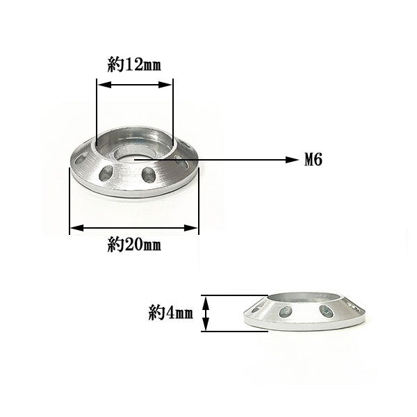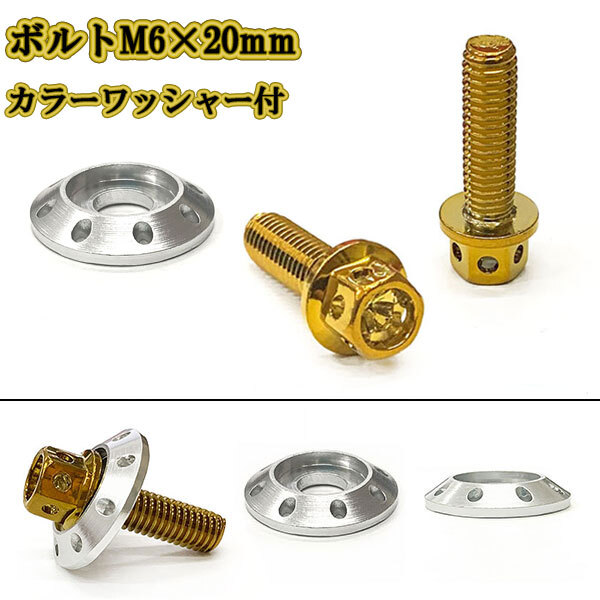 M6 20mm P1.0 フランジ付六角ボルト カラーワッシャー フジツボ 座面枠付 20mm ナンバー フェンダー 車 バイク ゴールド×シルバー
