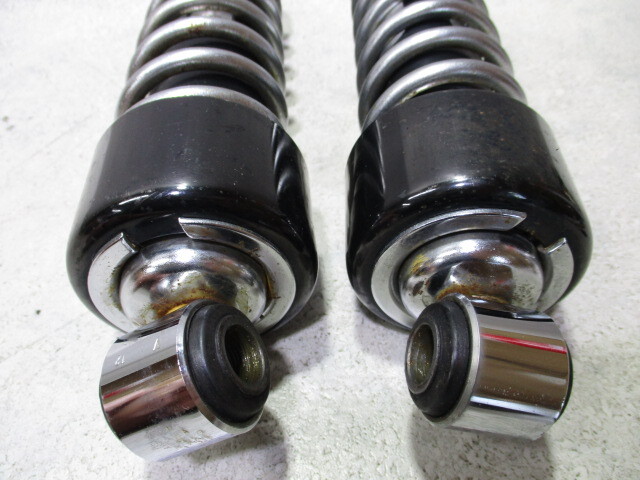 中古の、おそらく純正のものです。 全体的にスレやくすみ、サビ変色もありますが、あくまで目視で、全体的な曲がりは無く見えます。 ロット部分、可動部に点サビは無く、荷重をかけた場合はわからないものの、荷重をかけていない現状ではオイルのにじみは見当たりません。 パーツ入手のため把握できる現状は上記の通りです。1枚目画像のものが全てで、あくまで目視の判断です。 おそらくスポーツスター系のものですが、詳しい型式年式などは不明です。 画像をよくご確認のうえ、サイズを参考に、足回り流用の素材としても活用してください。 送料無料(北海道、沖縄県、離島の方は除く)でこの価格での落札です、お得なものだと思いますよ! a |