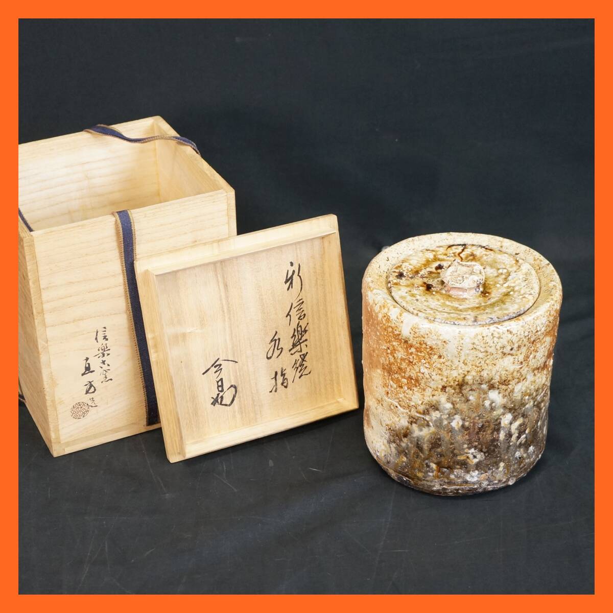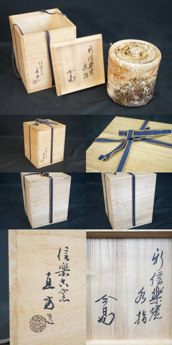 | 東ハ:【信楽焼】信楽古窯 上田直方造 矢筈口 水指 共箱付 裏千家14代 淡々斎書付箱 淡々斎花押 茶道具 茶器 茶陶 ★送料無料★ |