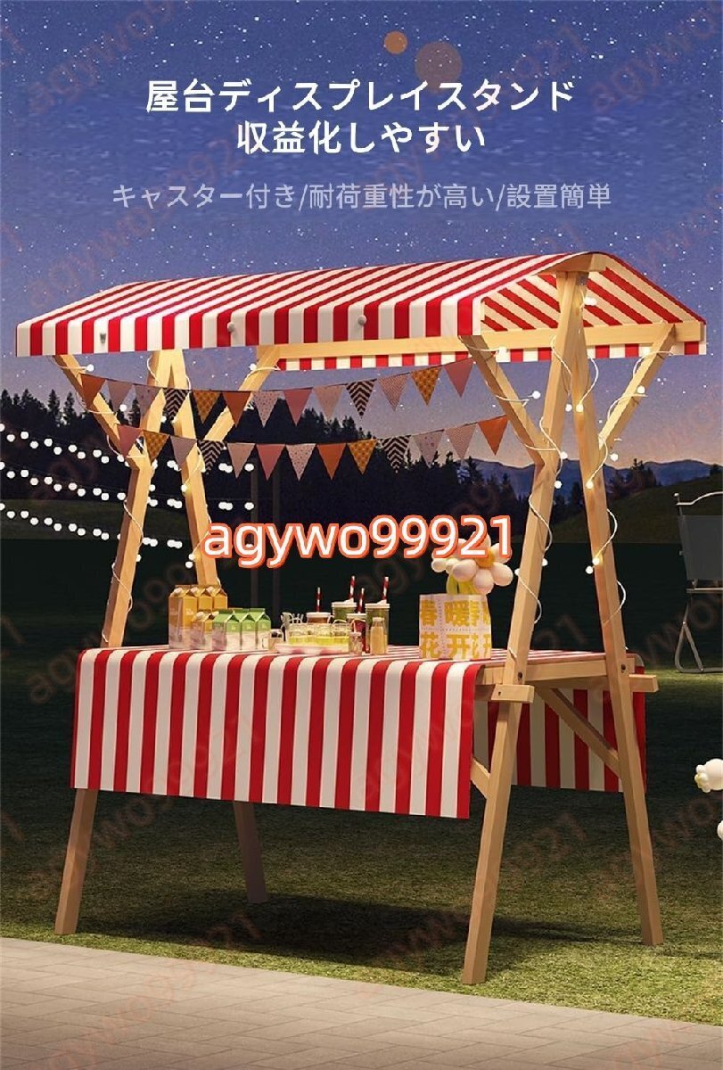 【3分で組み立て完了】フレームはあらかじめ穴が開けられており、付属のネジだけで組み立てられます。フレームは非常にシンプルなので、女性やご高齢の方でも簡単に設置できます。 【木製折りたたみ式マーケットストールカート】当社のストールカートは、フレームとパネルが取商品の説明プロ仕様の屋台ブースで販売をサポート ◇ 【仕様】 - 材質:木材 - オーニング素材:オックスフォード布 - 耐荷重:200kg - 幅:120cm / 150cm - 高さ:190cm この 仮設屋台セット は、フリーマーケット・祭り・マルシェ・移動販売など、様々なイベントで活躍する 多機能ブース。軽量ながら頑丈な作りで、屋外での長時間使用にも耐えます。 ◇ 10分で組み立て・コンパクト収納 ◇ 面倒な工具は不要! 簡単組み立て設計 で、1人でも素早く設置可能。終了後は折りたたんでコンパクトに収納でき、車載や保管場所に困りません。 ◇ 販売効率を上げる工夫満載 ◇ 商品を効果的に見せる 2段陳列棚 調理や会計用の 広い作業スペース 小物を収納できる サイドポケット 食品・雑貨・ハンドメイド作品など、あらゆる販売スタイルに対応します。 ◇ 悪天候にも強い屋外仕様 ◇ 天板に 防水加工 を施し、突然の雨でも商品を保護。脚部は 耐風クランプ で固定可能で、屋外イベントでの安定性を確保します。 【特徴】 - 無垢材フレームで、高い耐荷重性。 - 三角形構造で、優れた安定性。 - 屋根付きで、防風・防雨仕様。 - シルクのテーブルクロスと合わせて、雰囲気を演出できます。 - 折りたたんだ後は、車のトランク、ドアの後ろ、ガレージなどに収納できます。 - ビーチでも使用でき、展示会、市場の屋台、各種イベントに最適です。