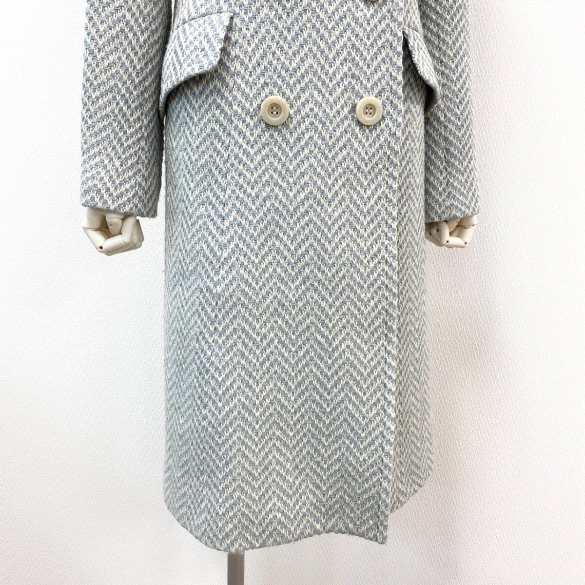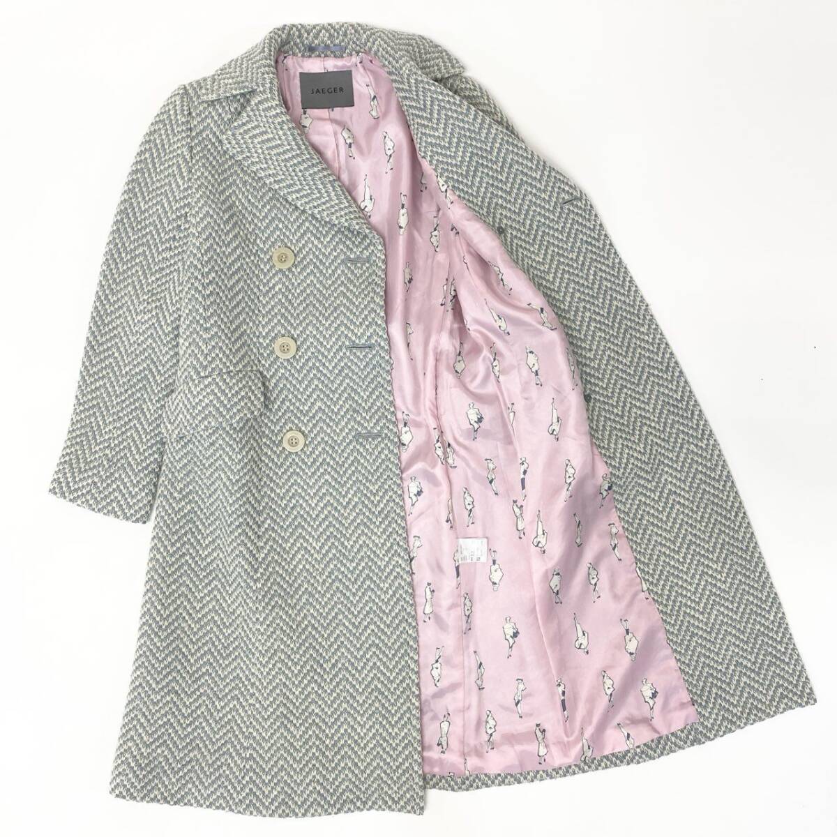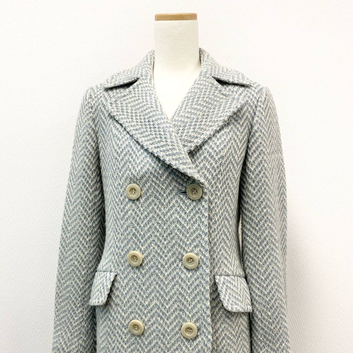 | スタッフ商品コメント | イエーガーの上質なウールを使用したツイードロングコートです。ブルー系のヘリンボーン柄で、落ち着きの中に華やかさを演出。ダブルブレスト仕様と大きめのボタンがクラシカルな印象を与え、裏地は総柄仕立てで見えない部分までこだわりを感じさせます。フォーマルにもデイリーにも使いやすく、冬のワードローブを格上げする一着です。 |
