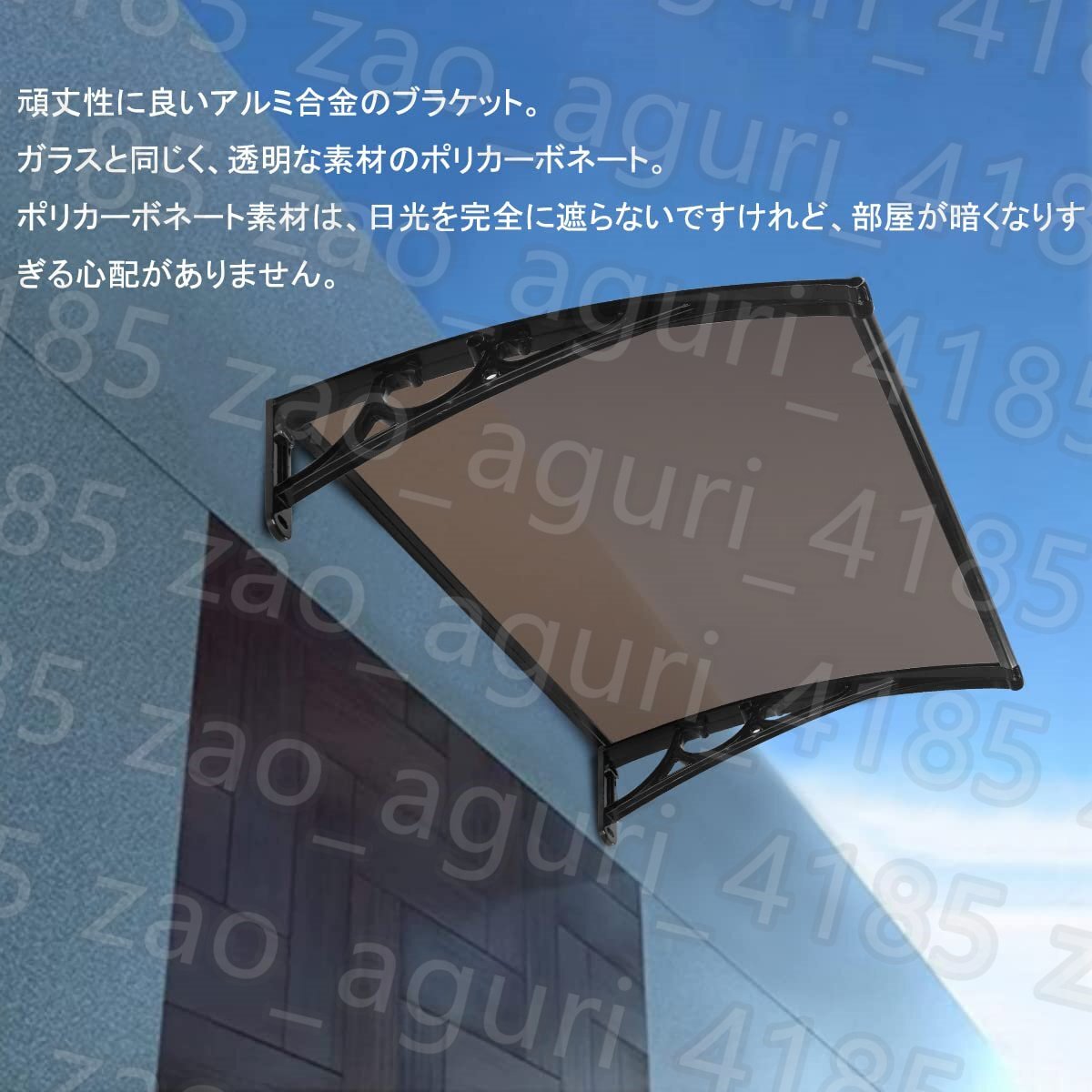 長さが100cmの屋根庇です。遮光率がよくポリカーボネート素材のおかげで太陽直射の傷害をカットする効果があります。程よく光を取り入れながらご皮膚健康を守ります。組み合わせや単件可使用なので、扉上、窓、自転車置き場などにも活躍します。