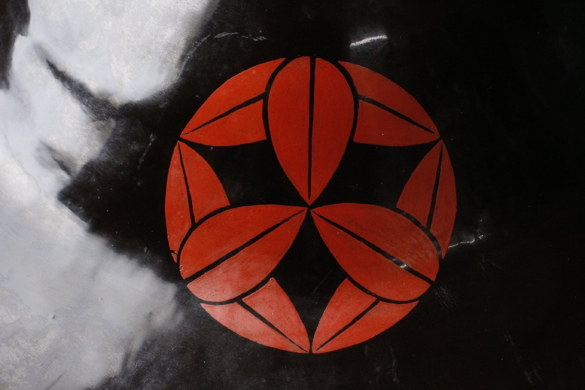 艶やかな黒漆塗の地肌に朱色の九枚笹家紋が印象的な逸品です。