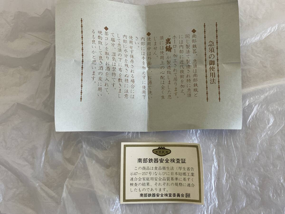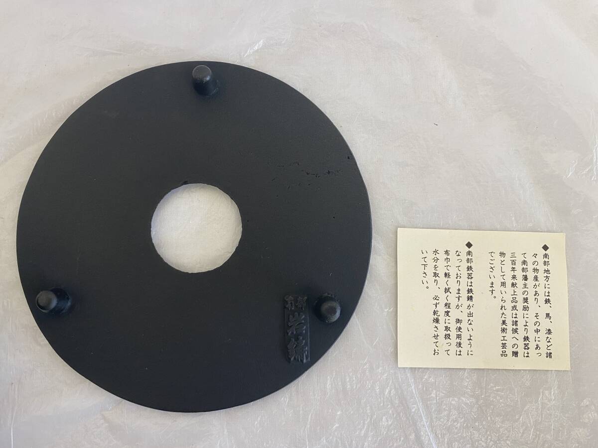 | 【未使用保管品】 本場盛岡 南部鉄器 岩鋳 5型 アラレ鉄瓶 0.5 アラレ釜敷 釜敷 大 セット 急須 鍋敷き ホーロー 金属工芸 箱 栞 |