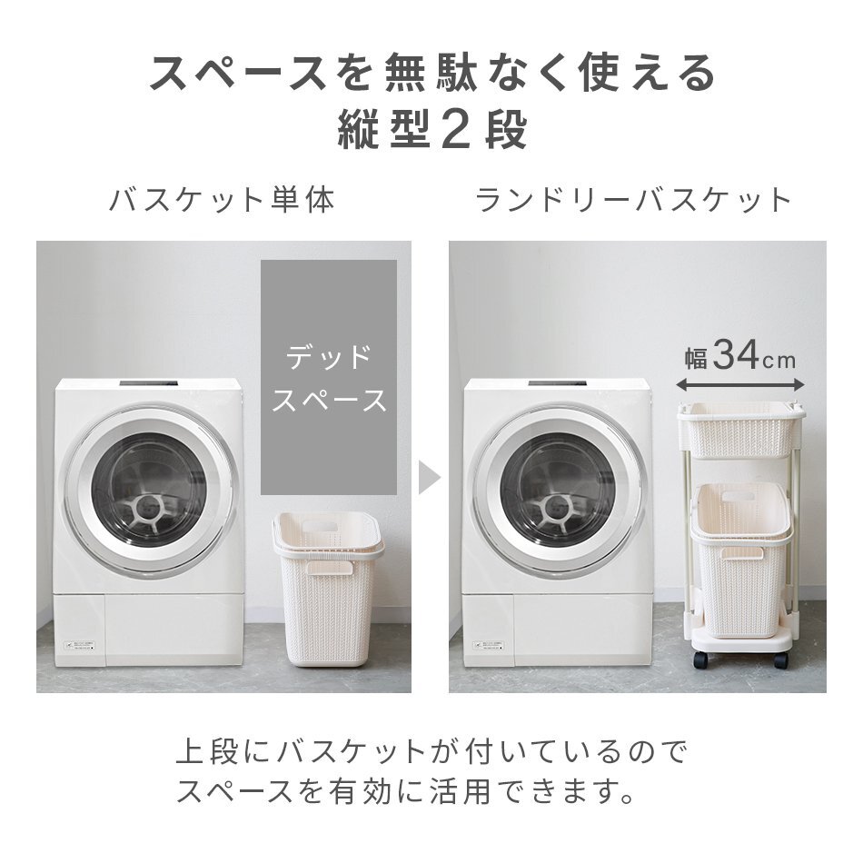 スペースを無駄なく使えるタテ型タイプです。 さらに!スリムなボディなので、コンパクトなランドリールームでも省スペースで使えます。 上段の浅バスケットにはバス用品、洗濯機まわりの小物が収納できます。 入浴時の着替えや脱衣カゴとしても重宝します。 下段のバスケットは大容量の深型タイプ! 安心の耐荷重で、たくさん入れても大丈夫です。 \その他、おすすめポイント/ ・移動しやすいキャスター付 ・目隠しと通気性を兼ね備えたメッシュデザイン ・上段カゴにはタオルバー付 ・下段カゴは取り外して持ち運べる持ち手付 【商品仕様】 カラー:グレー サイズ:(約)34×48×73(組立式) 重量:(約)2.0kg 耐荷重:(約)上段20kg / 下段50kg 材質:ポリプロピレン ※商品は、モニターによって色合いが異なって見える場合があります。 ※仕様・デザインは改良のため予告なく変更することがあります。 (洗濯かご 洗濯物入れ かご カゴ 洗面収納 バス用品 洗濯用品 ランドリー バスケット 小物整理 分別 サニタリー バスルーム 洗面台 かわいい 人気 おすすめ WEIMALL) |