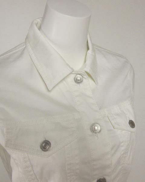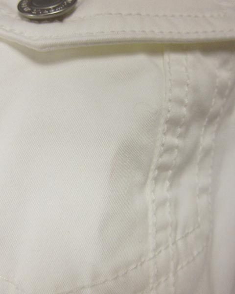 | 爽やかカジュアルに映えるホワイトデニム風デザイン☆ 柔らかく滑らかな肌触りのコンパクトなお作りで ゴワ付かずスッキリと着こなせる一枚です。 やや薄手でストレッチも効いたライトな着心地が◎ 左右胸ポケットに薄い汚れがございます。 ネック内側タグ上部にごく薄い汚れがございます。 実寸 着丈約49cm 袖丈約56.5cm 肩幅約37cm バスト約86cm 【サイズ】:(36) 【素 材】:(コットン57% リヨセル39% ポリウレタン4%) 【 色 】:(白) 【程 度】:(AB) 管理番号 27160316-006 427 003 | ||||