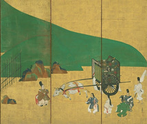 下記写真は、国宝「源氏物語」絵巻のうち「関屋の巻」屏風絵(静嘉堂文庫美術館所蔵)