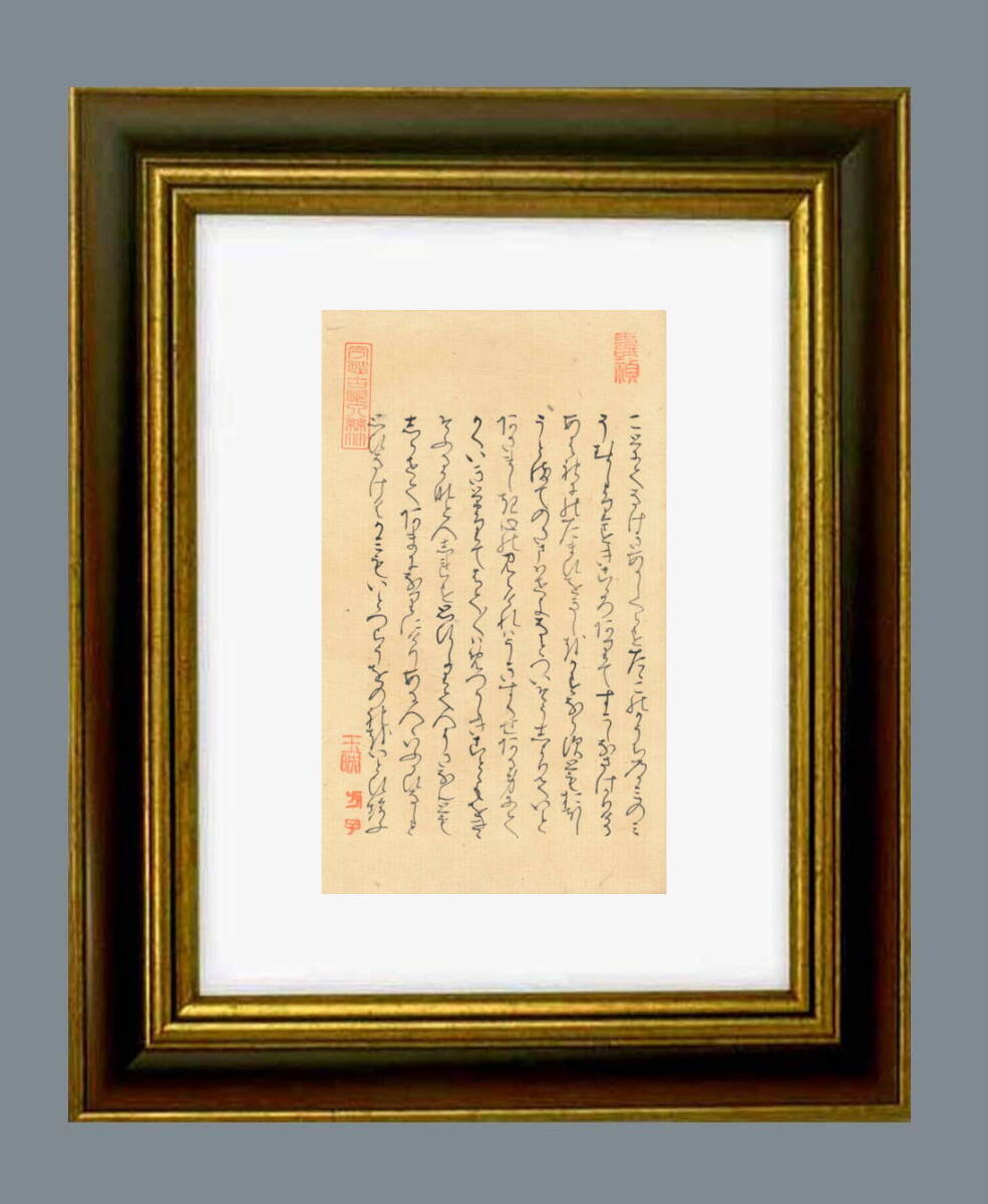 「源氏物語」自筆の大きさ タテ21.8センチ ヨコ12.8センチ。額縁の大きさは タテ37.0センチ ヨコ28.0センチです。額縁は新品です。