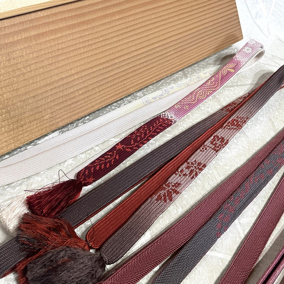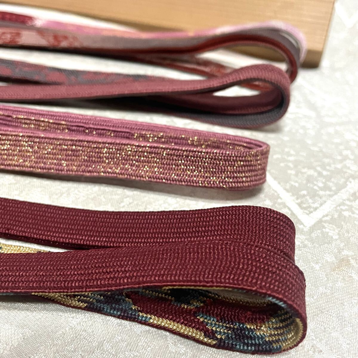未使用あり【京乃組紐】正絹 帯締め 帯紐 5本セット 赤系 赤×ゴールド系 和装小物 ☆訪問着、お茶会などに| 出价者 | 信用 | 价格 | 时间 |