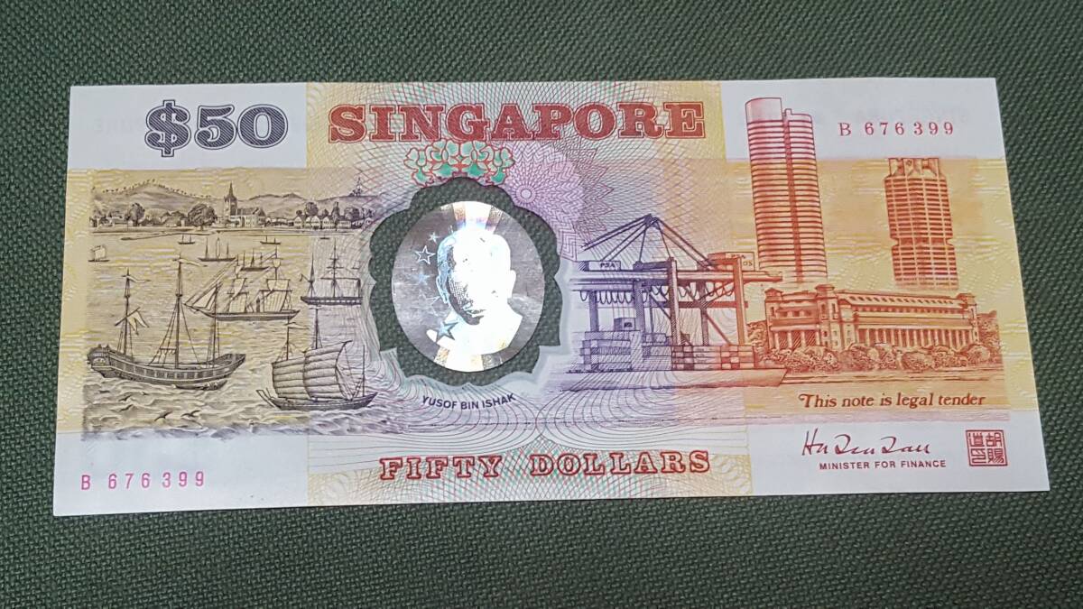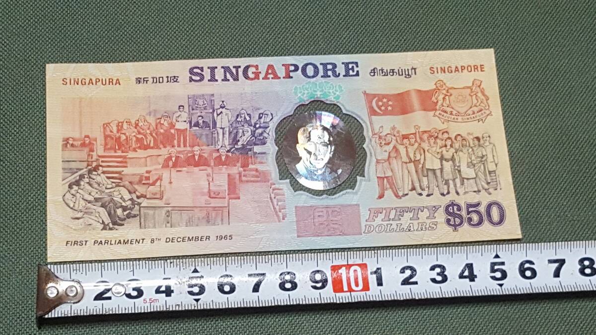 シンガポール ★ 独立25周年 記念紙幣 50ドル 50$ 海外 外国 紙幣 コレクション 希少!※ 現状・中古品