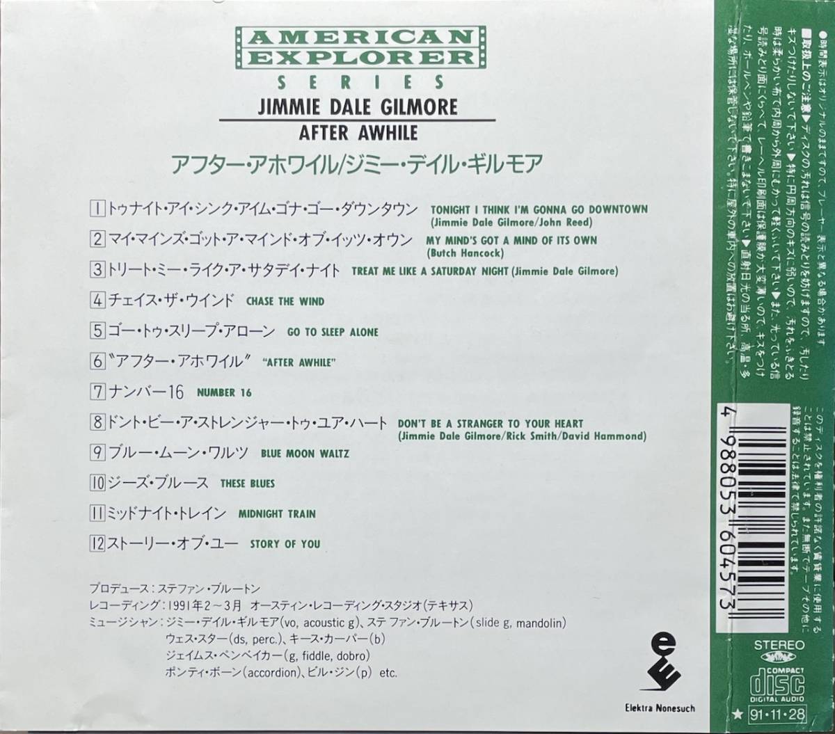 ------------------------------------------------- アーティスト:ジミー・デール・ギルモア/Jimmie Dale Gilmore タイトル:アフター・アホワイル/"After Awhile" 品番:WMC5-457 発売年:1991 (C13H) ★★★コンディション★★★ 生産国:国内盤廃盤(*輸入盤に日本語解説付き帯を添付した作品) 帯:解説付き帯の解説部分のみあり ケース:交換済み ディスク:NM ブックレット:EX*ブックレット良好/裏ジャケ背の片側に色褪せあり ★★★曲目★★★ 1.Tonight I Think I'm Gonna Go Downtown 2.My Mind's Got A Mind Of Its Own 3.Treat Me Like A Saturday Night 4.Chase The Wind 5.Go To Sleep Alone 6.After Awhile 7.Number 16 8.Don't Be A Stranger 9.Blue Moon Waltz 10.These Blues 11.Midnight Train 12.Story Of You ★★★解説★★★ *テキサスのカントリー系シンガー・ソングライター、ジミー・デイル・ギルモアの1991年作品。 その歌声は,朴訥な口調ながらも不思議な人なつっこさを備えたもので,スティール・ギターやフィドルに乗せて,のびやかに響き渡っていく。 おおらかな中にも,細やかな情感が滲みでてくる歌声だ。 --------------------------------------------------------------------- ☆お願い☆ ・他のサイトでも販売している場合がございます。 そちらで売れた際には出品の取り消しをいたしますので、お好みの商品がございましたら、お早めのご落札をおすすめいたします。 ・詳細な記載は割愛させて頂いている場合がございます。 商品内容、曲目等につきましてはお気軽にご質問下さいませ。 ・盤面につきましては、再生に問題のあるようなキズがある商品は出品しておりませんのでご安心下さいませ。 ・研磨痕は出来るだけ記載しておりますが極薄い場合は見落としもありますのでご容赦下さい。 ・きれいな物が多いですが、中古にご理解のある方のみ入札して下さい。 (80年代などの古い商品はジャケット・解説などの紙類が経年劣化が見られる場合が有ります。) ・梱包は、主にビニール袋(防水)+クッション封筒(破損防止)での梱包となります。(規格外サイズの商品は封筒+防水袋+プチプチ) コンディションについて ディスク NEW(未使用品) M(Mint..キズ無しの美品) NM(見た目ほとんどキズなどなしの美品となります(見る角度で微キズ、薄い線キズなどがある場合) EX(若干のスレ、キズ有りますが概ね綺麗/ごく薄い研磨痕など) VG(やや目立つキズ、研磨痕などあり/再生は問題ないもの) ブックレット、ジャケなど NEW(未使用品) M(Mint..キズ無しの美品) NM(見た目ほとんどキズなどなしの美品となります(軽いアタリ,スレ程度はあり) EX(若干のスレ、キズ有りますが概ね綺麗なもの/ケースの噛み痕,軽い折れ癖,背の色褪せなど) VG(折れ、破損、色褪せ、欠損などあり/カット盤) *輸入盤に関しては新品でもジャケの傷みなどある場合あり。生産国によってはジャケなどの紙類の作りが悪い場合あり。 *新品の状態がわからない場合が多いのでわずかな色褪せなどはご容赦ください。 *ボックス、インナーなどの欠品は元の状態がわからない場合は記載しませんので説明欄、掲載写真にてご判断ください。 <発送方法> クリックポスト 最初のお返事は48時間以内に、お取り引きは1週間以内に完了していただけるようにお願いいたします。 ※不在などの大事なお知らせは、自己紹介欄と落札後の自動メールに記載しますので、 自己紹介欄はご入札前に必ずご確認下さい。 他にも多数出品しておりますので、あわせてご覧下さい。
