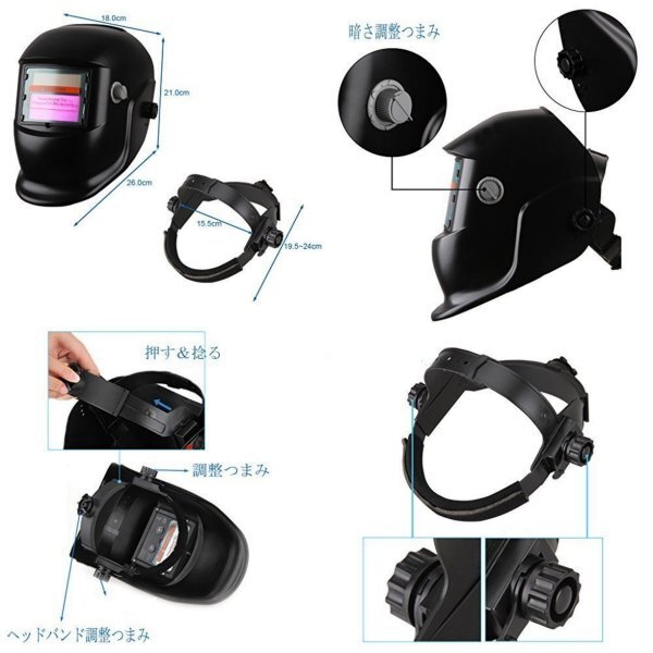 | 自動遮光溶接面 液晶フィルター 遮光速度1/25000秒 ソーラー充電式 溶接マスク ヘルメット 遮光面 アーク対応 アーク溶接 TIG MAG MIG OQ89 新品 送料:全国一律1500円(沖縄・離島を除く) 溶接時の有害光線を瞬時に遮光します。 ソーラー電池の採用により電池交換が不要です。 アーク光を受光するソーラー電池で頻繁な電池交換が不要です。 自動的に電源がON/OFFされます。 アーク光の発生と同時に遮光(反応)で有害光線から目を守ります。 【商品詳細】 仕様:感光速度:1/25000秒 ユニットサイズ:110×90mm ビューエリア:92×42mm 遮光レベル:DIN9~13 オフ時DIN4 リカバリータイム:0.2~0.4秒 内蔵バッテリー:リチウム電池 充電:太陽光 サイズ(約):縦21×横22×長さ30cm 重さ(約):480g =付属品= 収納袋、説明書(英文) ◆輸入品◆ 日本語取扱説明書は付属致しません。 取り扱いについてのサポートはご対応しておりません。 予めご了承くださいませ。 ★★溶接マスク続々出品中♪★★ | |||