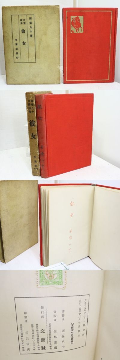 抒情詩集 彼女 初版 / 西條八十 ◯当店在庫から「西條八十」の本を探す| ★ 発送方法 (送料無料) ・日本郵便のゆうパケット・レターパックライト・レターパックプラス・ゆうパックの中から荷姿の大きさに適した方法で発送します。(発送方法や到着日時はご指定いただけません。) ・上記発送方法はすべて追跡番号付き・土日配送有・速達扱いです。ゆうメールや定形外は発送に使用いたしません。 ・ゆうパケット・レターパックライトは郵便受けにお届け、レターパックプラス・ゆうパックは配達員対面受取です。防水梱包します。 ★ 必ずお読みください ・代金決済後の次の火木土に発送します。 ・ストア出品です。ご注文時に必要事項のご記入・決済いただいた後は、やり取り不要です。商品の到着をお待ち下さい。 ・肉筆物・美術作品は真作保証いたします。 ・商品のレファレンス(調べ物)サービスは行っておりません。また当店商品以外の無料鑑定は行っておりません。 |