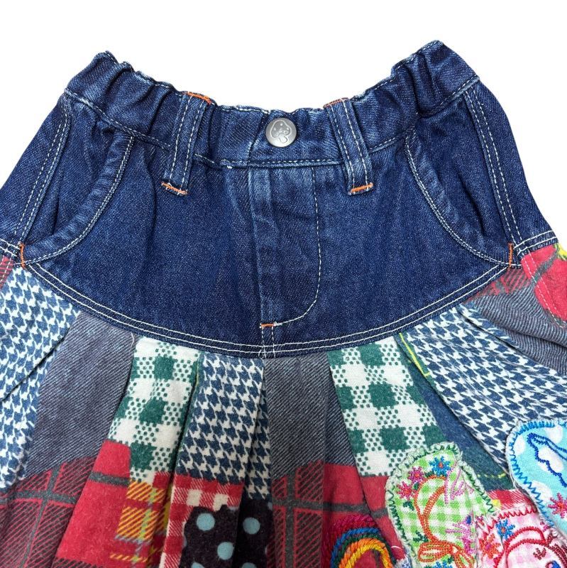 ネル素材とデニムの異素材切り替えのロングスカート。
