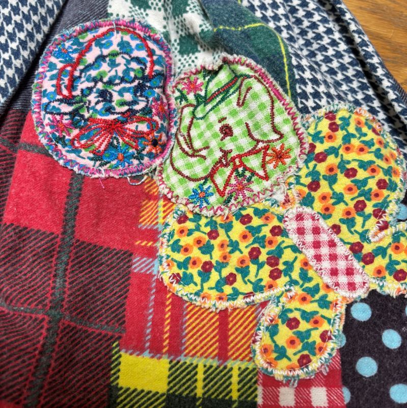 パッチワークデザインがアクセントとなり、シンプルながらも個性的でおしゃれな印象を与えます。
