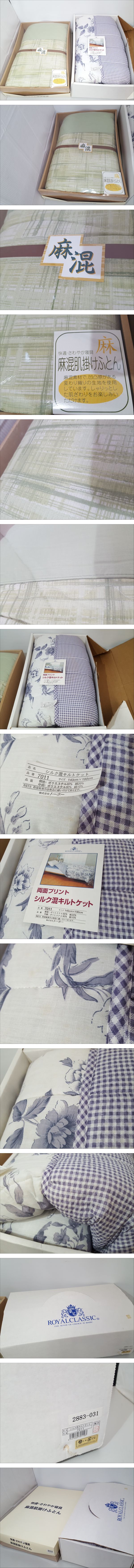 ※離島など別途中継手数料がかかる地域が御座います。 その場合はお振込みを追加でお願いする場合が御座います事、 事前にご了承の程、宜しくお願い致します。 ※送料には業者指定された運送用梱包資材代が含まれます。 専用BOX、段ボール梱包以外での補償は対象外となります。 [商品名] 1円スタート 【未使用品】麻混肌掛けふとん シルク混キルトケット 寝具 2点セット [状態] 新品・未使用品のおまとめセットです。 おまとめセットにつき詳細な状態確認は行っておりませんので、 状態の悪い物もあるかもしれません。 右の寝具はシミがあります。 箱に汚れがあります。