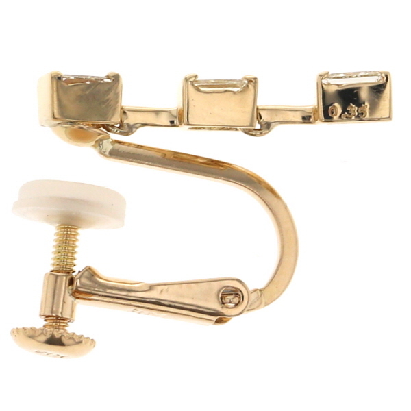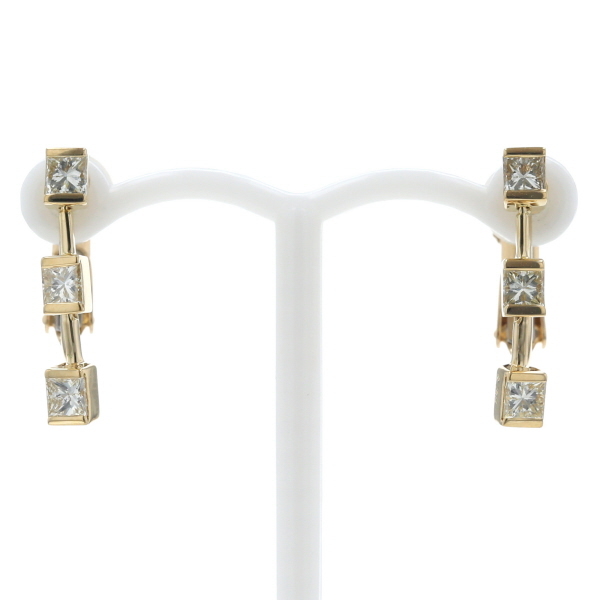 | 商品紹介 | K18イエローゴールド製のイヤリングです。 プリンセスカットのダイヤモンドを3連に配し、スウィングするたびに華やかな輝きを放ちます。 動きのあるデザインが耳元を優雅に彩る、存在感あふれるジュエリーです。 |