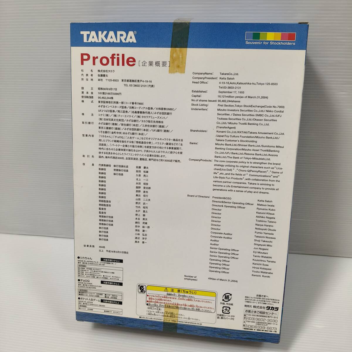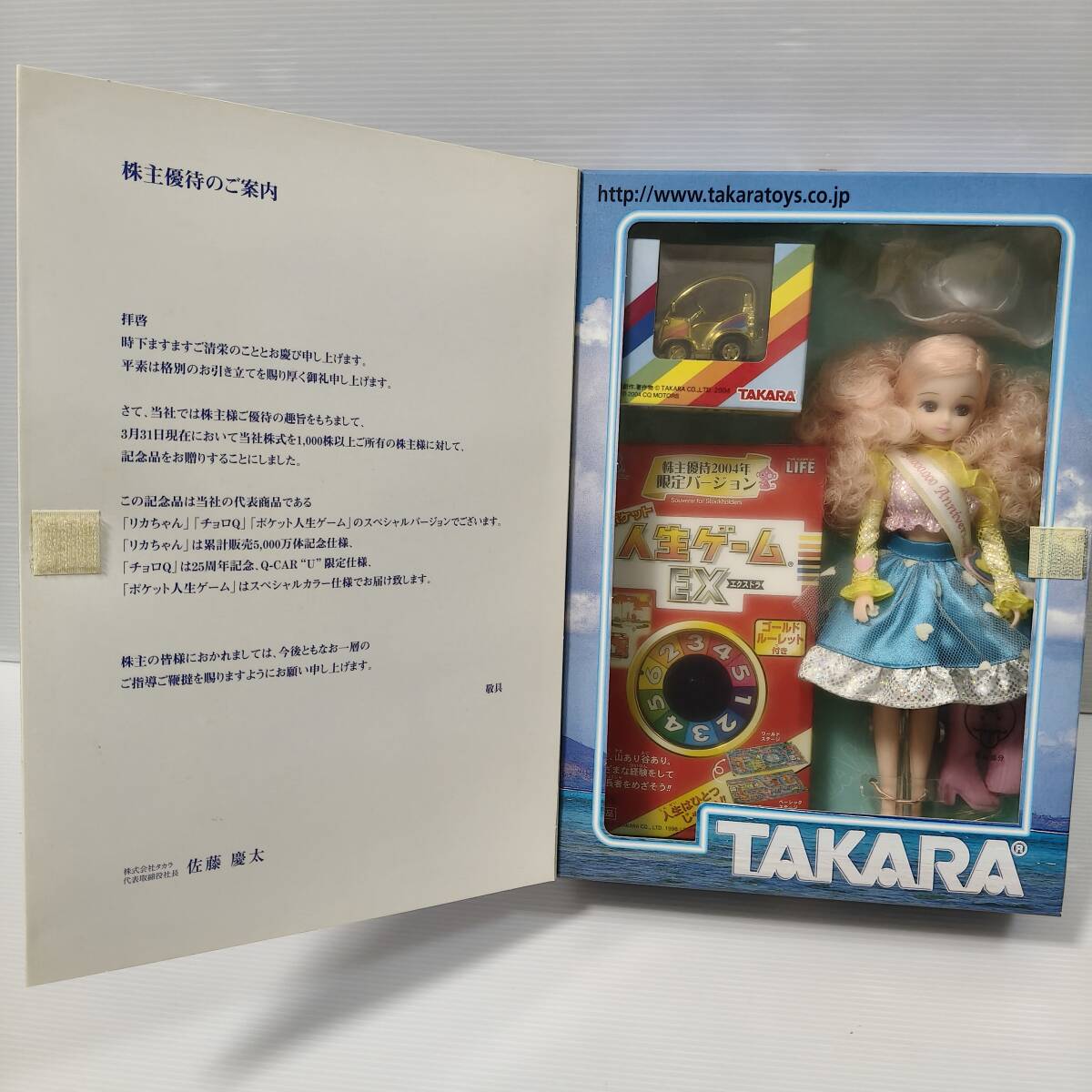 TAKARA タカラ タカラトミー 株主優待 株主限定 2004年 非売品 限定品 リカちゃん Licca チョロQ 人生ゲーム ポケット人生ゲーム 記念品 3点セット 未使用 新品 デッドストック ドール 人形 ミニカー ボードゲーム コレクション 送料無料 匿名配送