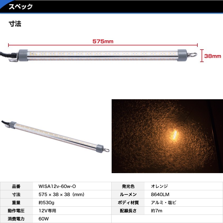 シラスウナギ漁に人気の LED 水中ライト オレンジ 60w 明るいロングサイズ!| 出价者 | 信用 | 价格 | 时间 |