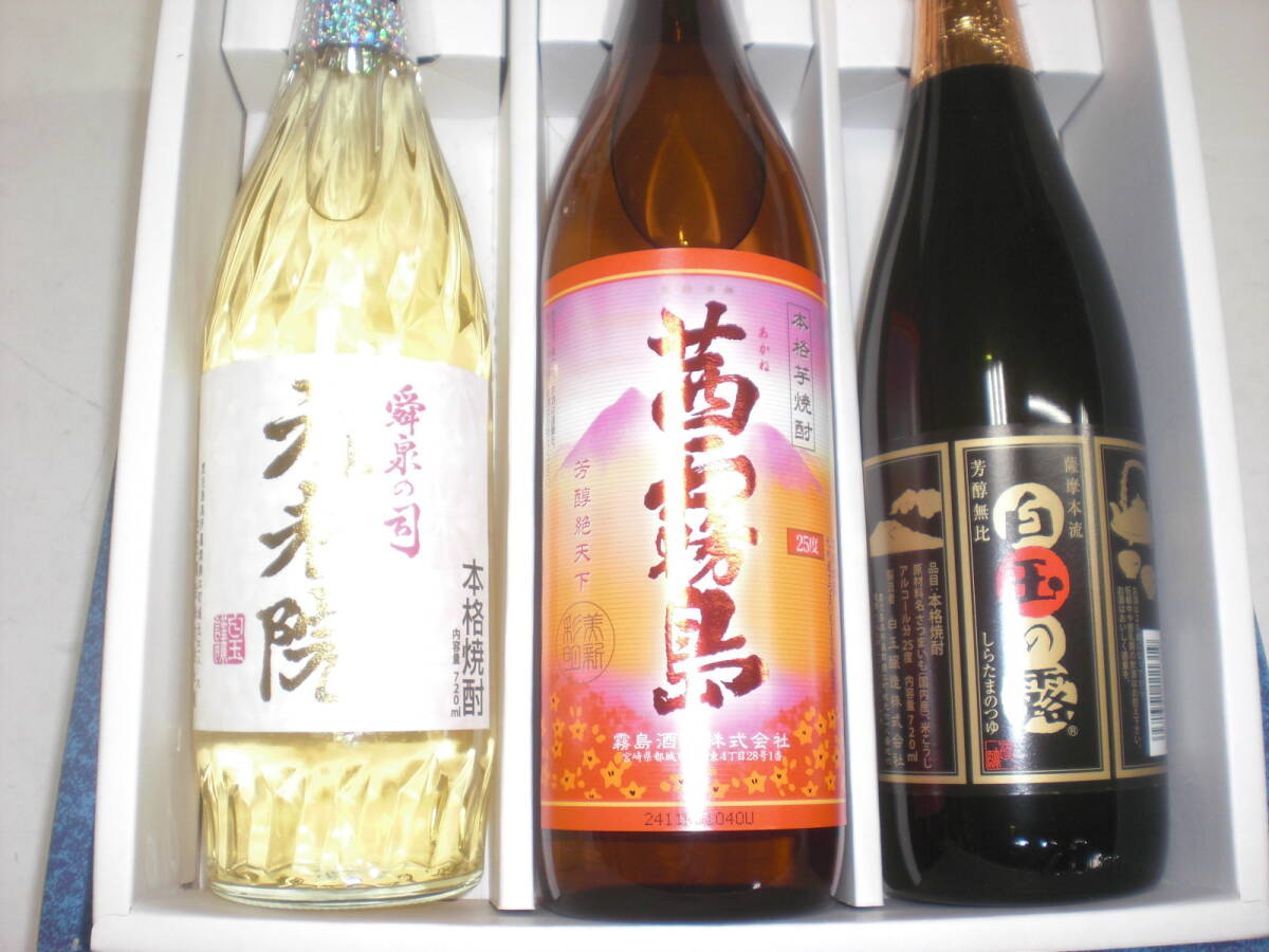 魔王の蔵元白玉醸造の元老院25度720ミリ樫樽による麦焼酎と芋焼酎をブレンドした長期貯蔵焼酎淡い琥珀色上品なまろやかさのほか、麦焼酎の香ばしく軽やかな旨味と芋焼酎の甘くふくよかな味わいが感じられる焼酎です。白玉の露20度720ミリ芋本来のふくよかな甘み、まろやかで飲み飽きのしない口当たりの昔ながらの本格蒸留酒。芳醇な味とコク香りが感じられる焼酎です。霧島酒造の赤霧島25度900ミリもしくは茜霧島25度900ミリより選べる3銘柄セツト価格です。落札後お好きな銘柄コースをお知らせください。質問OK