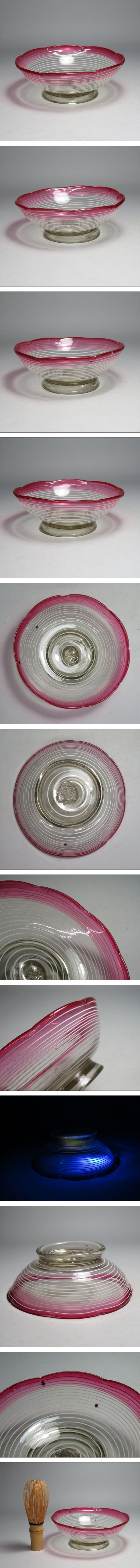 | 1円スタート~ 明治期~大正ロマン 赤縁暈し渦線文 ガラスボウル ウランガラス 気泡ガラス 吹きガラス/昭和 明治 大正時代 | ||